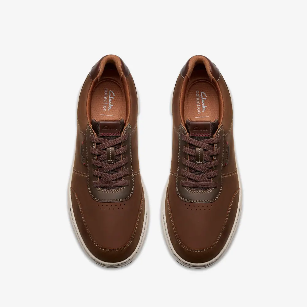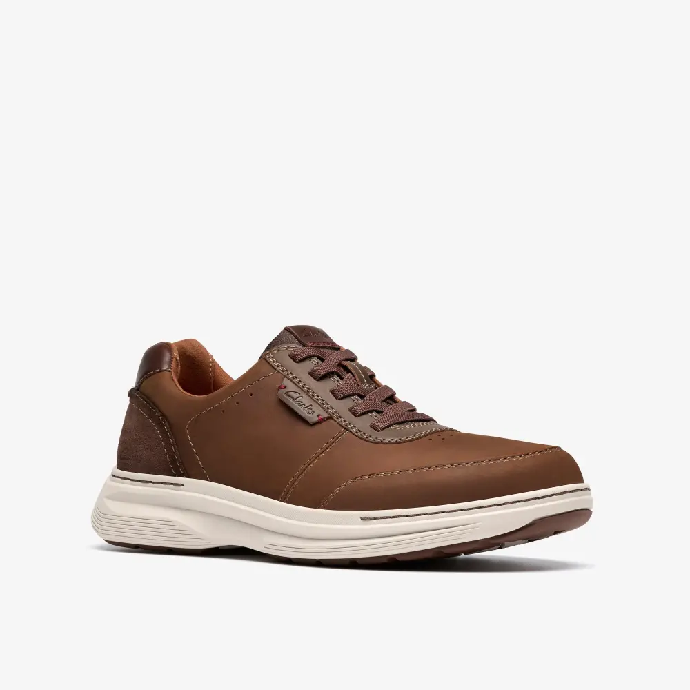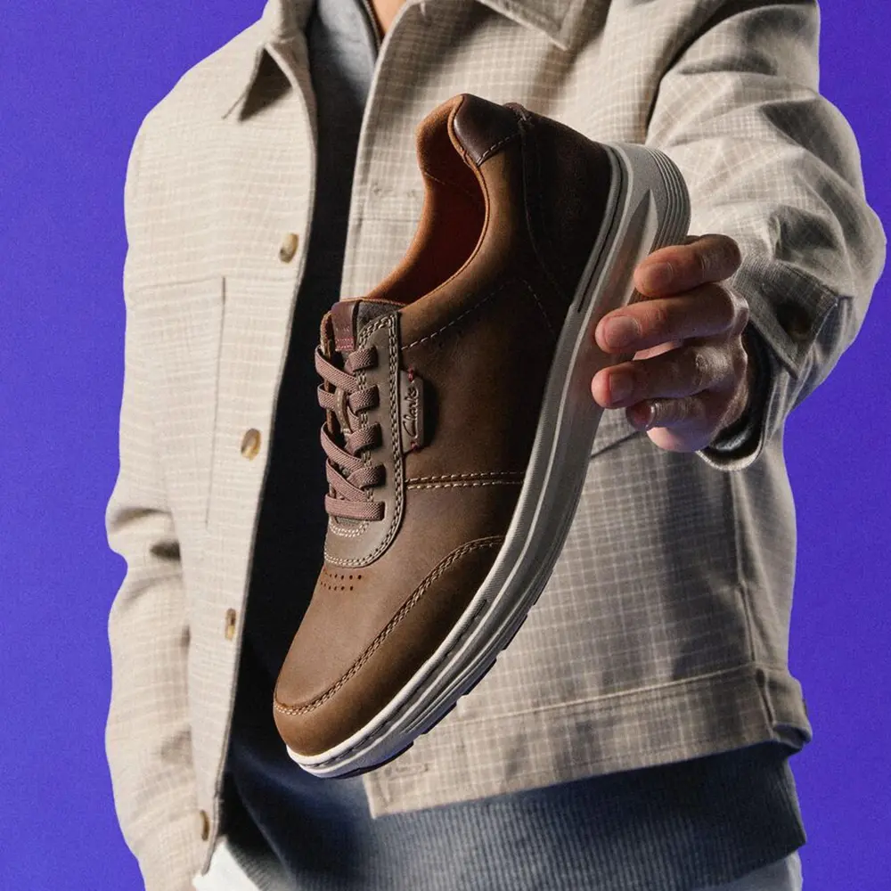 Craftwell Lace leads Clarks men's Essentials into the future with its modern design cues and considered comfort features. Built on a lightweight EVA unit with rubber inserts for improved durability and traction, this silhouette features a padded lining and a molded comfort footbed for all-day ease. Combination leather uppers add a tactile look, while an elasticized lace closure offers easy on/off wear.