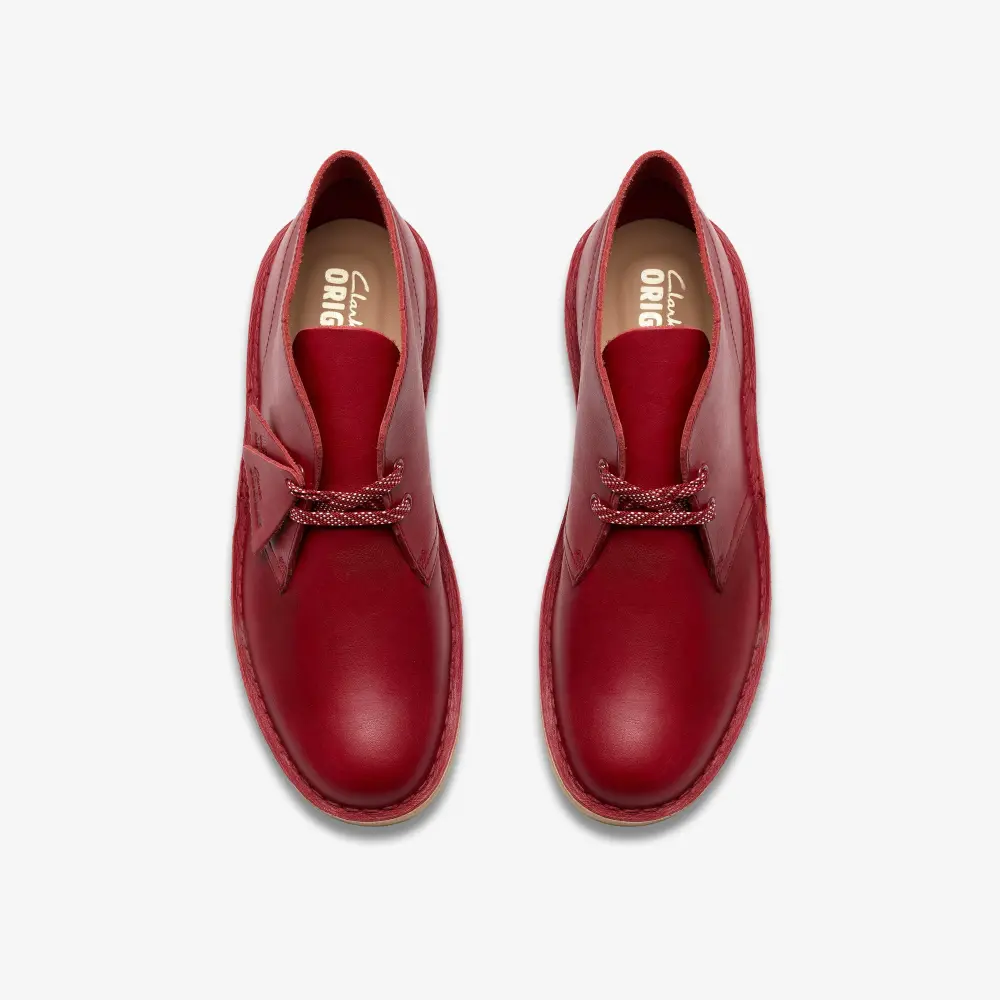 Cultural cachet and design DNA: no shoe is quite like the Clarks Originals Desert Boot. Born in the '50s, its minimal, progressive style sparked a worldwide footwear revolution – worn by beatniks, mods, Britpop bands, and Jamaican rude boys. And every design detail today remains true to that first pioneering pair. Here, the boot’s crafted, clean lines are enhanced with premium dark red leather and finished with an unfussy lace fastening. The authentic crepe sole completes this distinctive silhouette. Instantly recognizable, forever iconic. A true original.