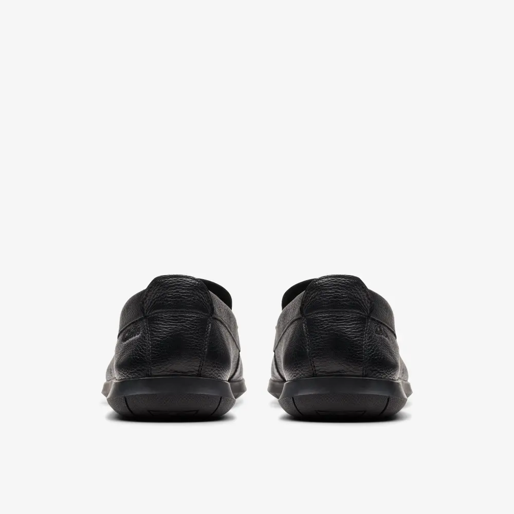 - Barefoot-friendly, collapsible, unlined, black leather upper