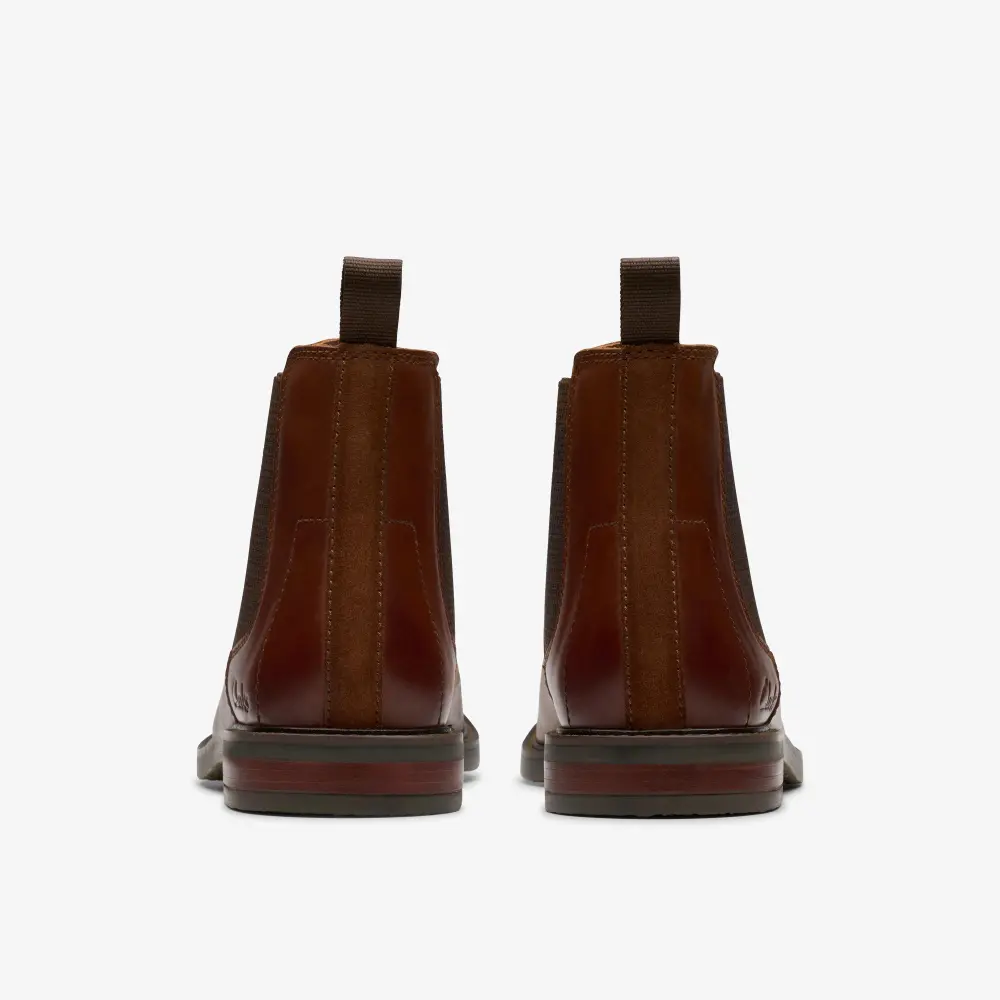 Crafted from premium leather, the Jaxen Easy boot pairs classic design with modern comfort. A stack-effect heel and grippy sole offer everyday stability, while the Extreme Comfort footbed delivers all-day cushioning and support. Finished with subtle Clarks branding and heritage stitching for a refined touch.