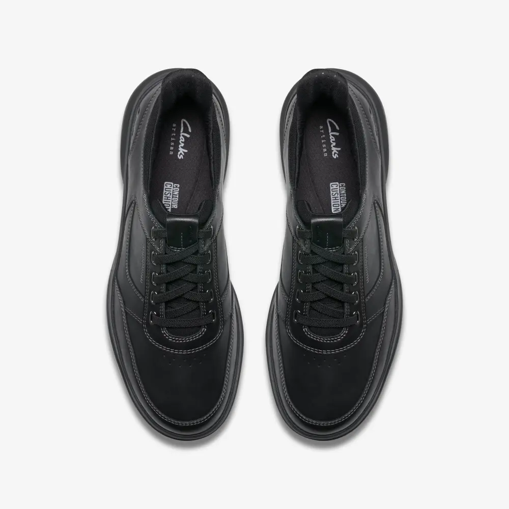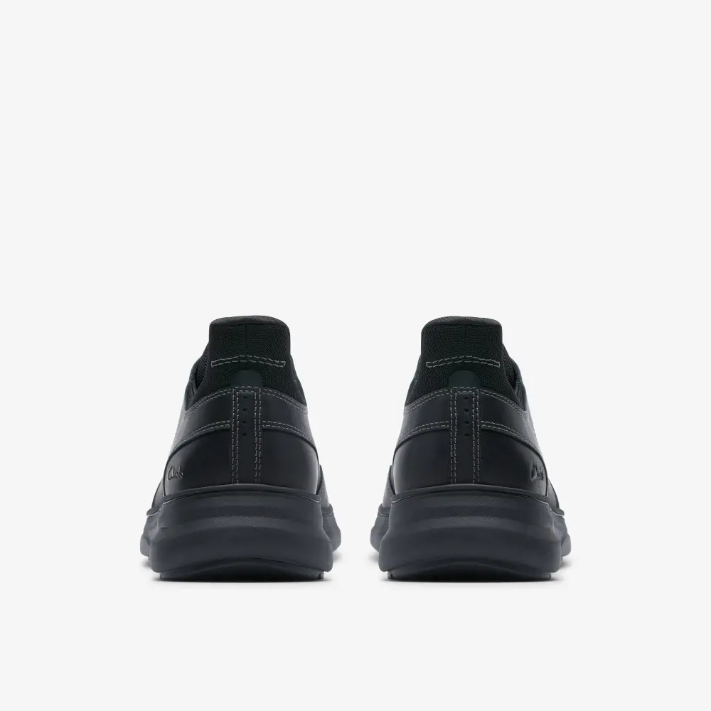 Introducing Mullan Easy – the ultimate comfort casual shoe for everyday wear. This profile combines a premium black leather upper with classic Clarks craftsmanship, creating a versatile silhouette that slots seamlessly into any wardrobe. With an easy-entry heel construction and elasticized lace closure, it delivers effortless wear and all-day ease.