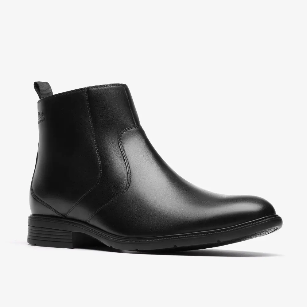 Mens Steadwell Zip Black Leather Dress Boots