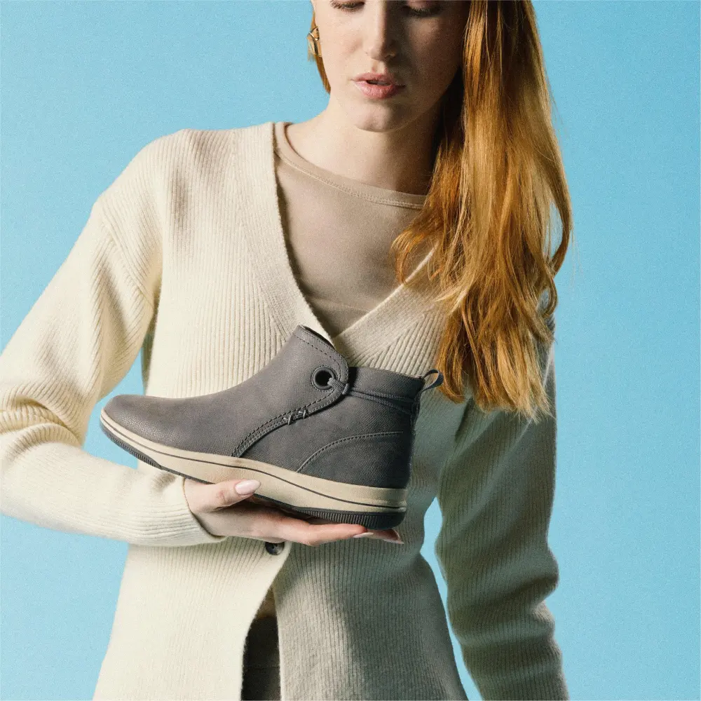 Take on the season in Breeze Derby, an outdoors-ready ankle boot which delivers plenty of grip when the ground gets frosty. Leveling up your comfort with a plush, pillowy footbed, this easy-wear pair is crafted with soft dark grey textiles and features handy heel loops for easy foot entry, all underpinned by our recognizable Breeze sole – the ultimate in lightweight support.
