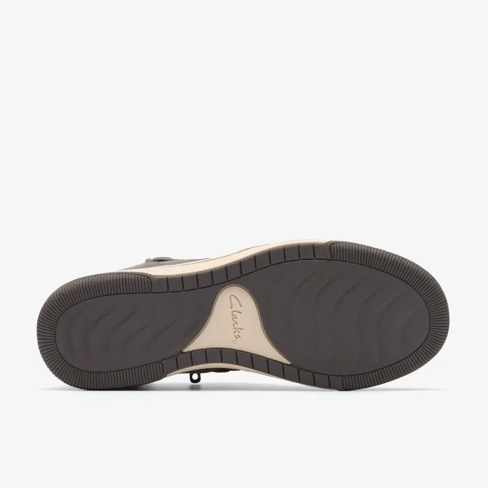 - Soft dark grey textile upper