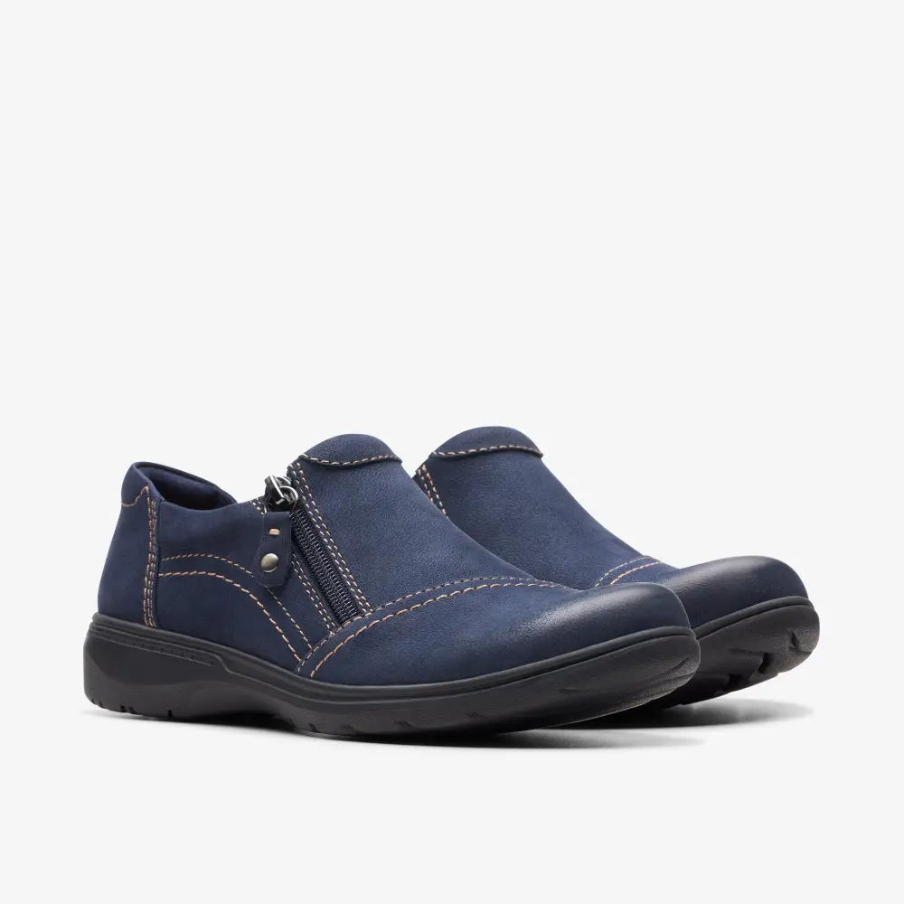Keeping comfort at its core, our trusty everyday shoe Carleigh Ray is crafted for back-to-work and busy weekend wear. Durable nubuck uppers in classic navy wrap the foot perfectly, while our signature underfoot cushioning and a super-grippy sole keep every step grounded.