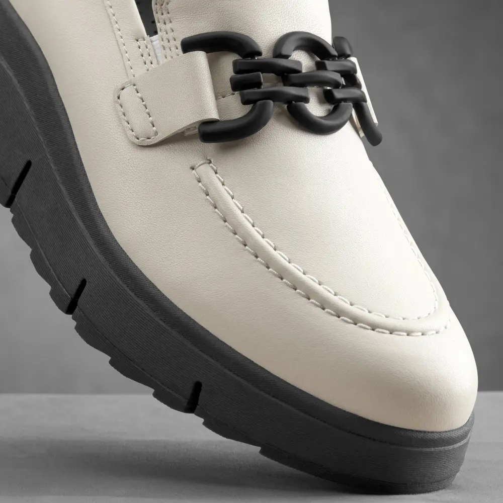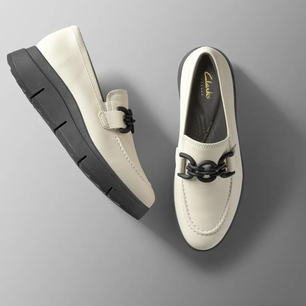 Bold shoes mean business, and our Loriini Izzy leather slip on is perfect for work and after-hours alike. Set atop a chunky wedge heel with flex grooved soles for ultimate stability, it makes use of our signature Contour Cushion footbeds to move you forward in total comfort. An almond toe shape and sleek metal trim bring a contemporary finish to this staple.