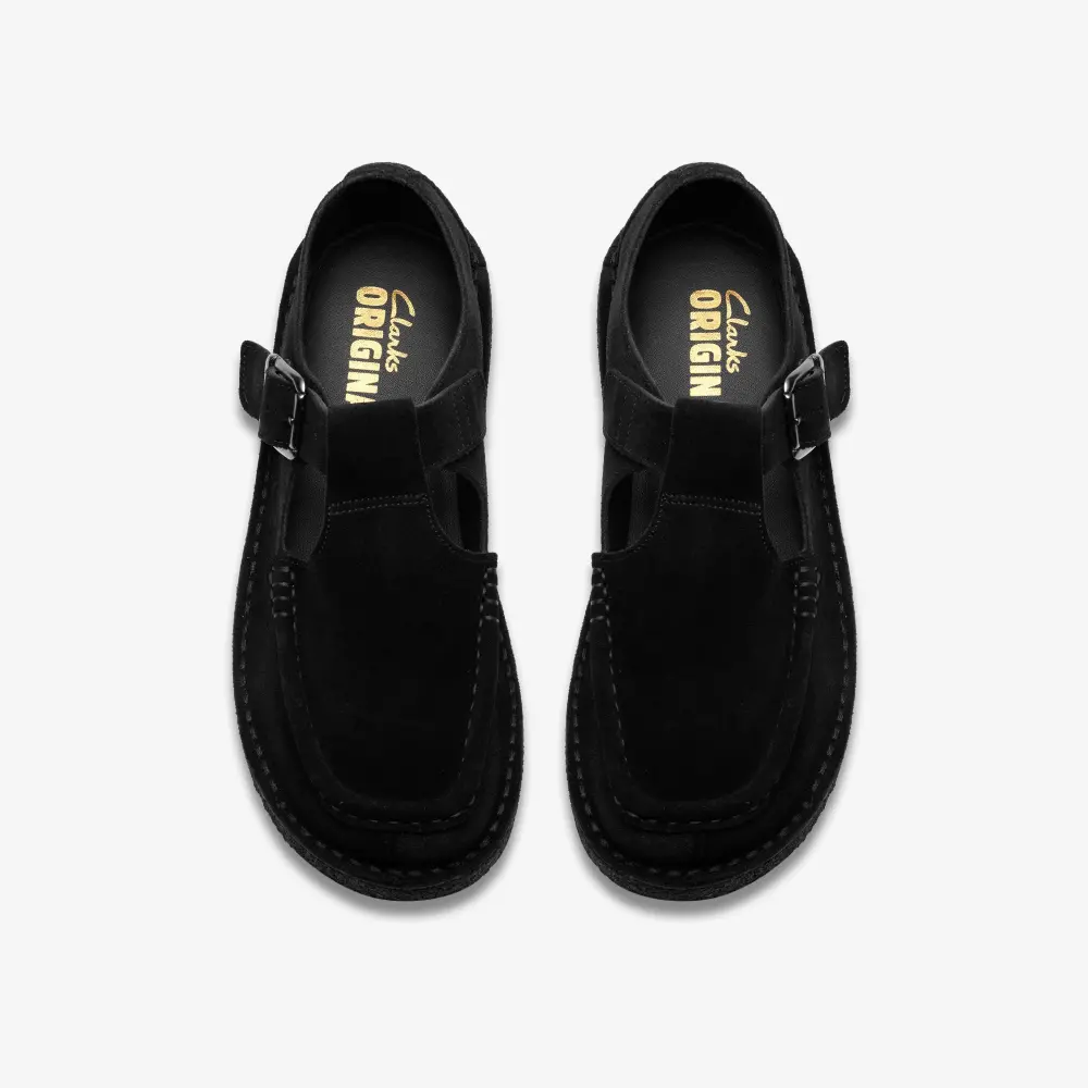 Crafted with suede uppers and a secure buckle fastening, the Nomad T Bar combines functionality with refined details. The hand-stitched apron seam adds a touch of craftsmanship, while the Clarks Originals heat-embossed metallic logo on the sock and the iconic camel Trek Man embossed on the heel counter showcase the shoe’s heritage.